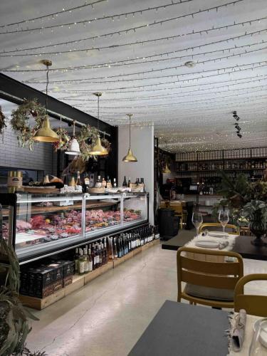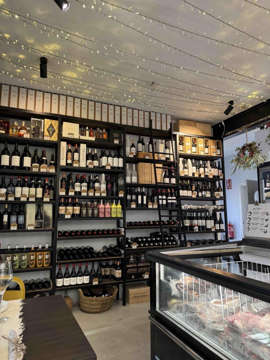 Dès l’entrée, le charme opère. Le rez-de-chaussée offre une atmosphère vivante de bar-restaurant, avec un long comptoir en bois, des étagères garnies de bouteilles de vin et une animation typiquement méditerranéenne. On y prend l’apéro, on partage quelques tapas au comptoir, on discute fort, on rit — c’est l’Espagne dans toute sa convivialité.