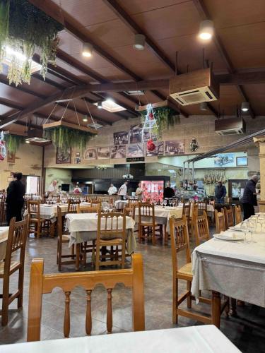 L’établissement offre plusieurs espaces, dont des salons où l’on peut observer la découpe et la cuisson des viandes, ainsi qu’une grande terrasse d’été propice aux dîners en plein air et aux célébrations telles que mariages, baptêmes ou communions.