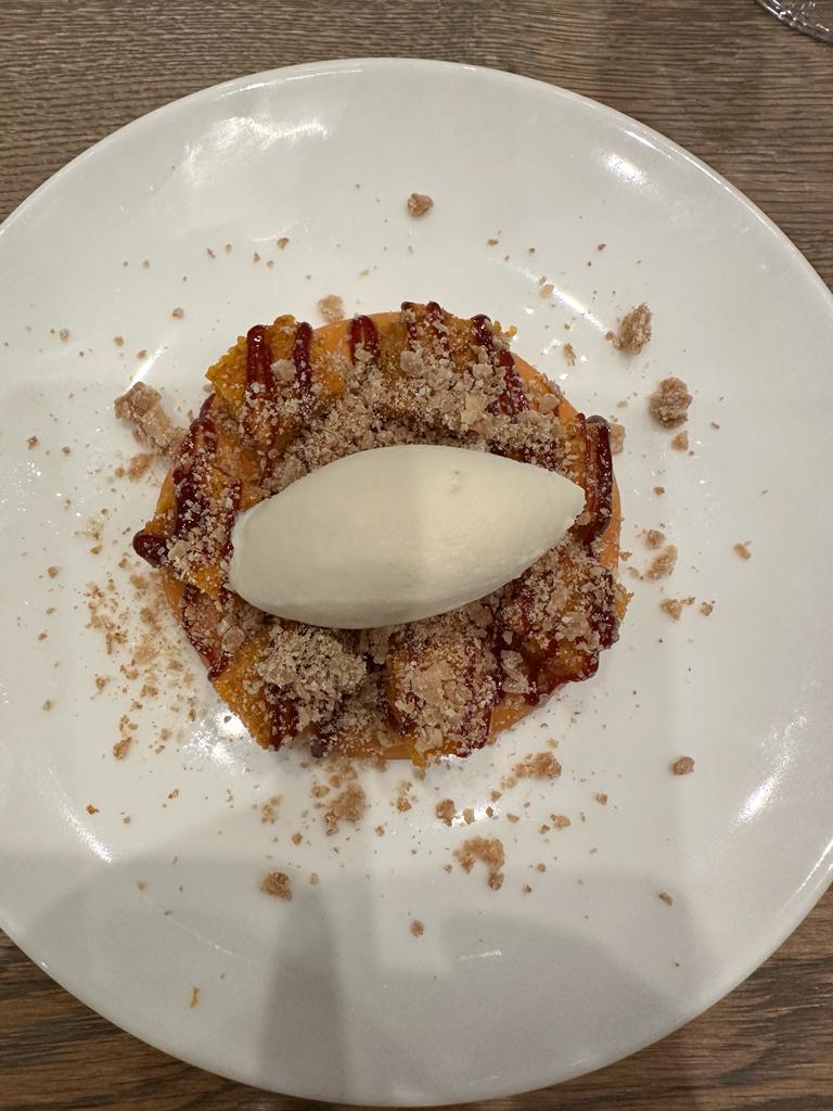 En dessert, une pana cota ainsi qu’un sorbet à la mangue sans oublier le chupito offert par la maison.