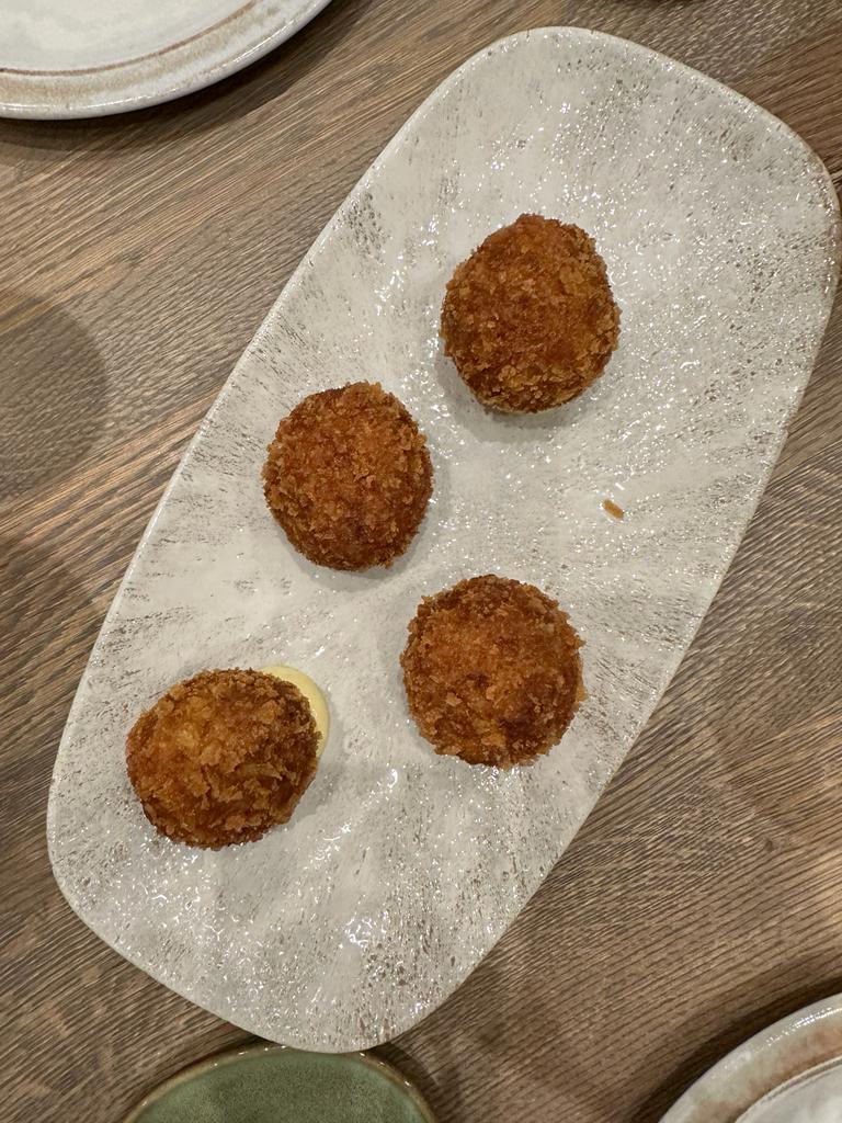 Nous y avons dégusté lors de la nochebuena, des croquettes de viande fondantes, une salade au poulpe, une patte de poulpe, du poisson et un excellent dessert aux épices locales.