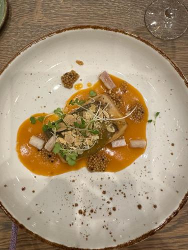 Nous y avons dégusté un menu a 23€: délicieux trio de bruschettas ainsi qu un spaghetti aux fruits de mer pour moi. Nadia quant à elle a savouré en entrée du fromage de chèvre accompagné de courgettes ainsi qu’un plat du poisson accompagné d’une crème de choux fleur et de sa fricassée de légumes.