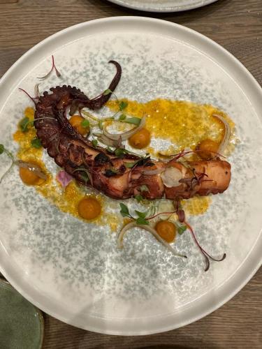 L’entrée, une patte de poulpe au four, était tendre et parfaite en bouche, préparée avec une maîtrise impressionnante. Puis est venu le plat principal : la paella aux fruits de mer à la façon « Los Angeles ». Les fruits de mer étaient d’une fraîcheur exceptionnelle et cuits à la perfection. Chaque bouchée était une explosion de saveurs marines.